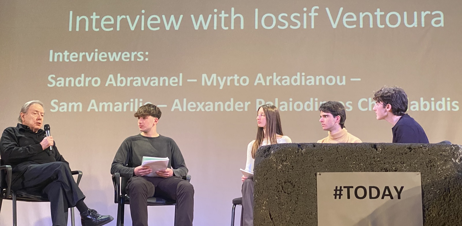 - Οι μαθητές της Β' Λυκείου είχαν την ευκαιρία να γνωρίσουν από κοντά τον πολυγραφότατο συγγραφέα και ποιητή κ. Ιωσήφ Βεντούρα. Το κουβάρι της ιστορίας του, ως κρυμμένου παιδιού στον πόλεμο, ξετυλίχθηκε από τους μαθητές Σάντρο Αμπραβανέλ, Σαμουήλ Αμαρίλιο, Μυρτώ Αρκαδιανού και Αλέξανδρο Παλαιοδήμο - Χαραλαμπίδη.