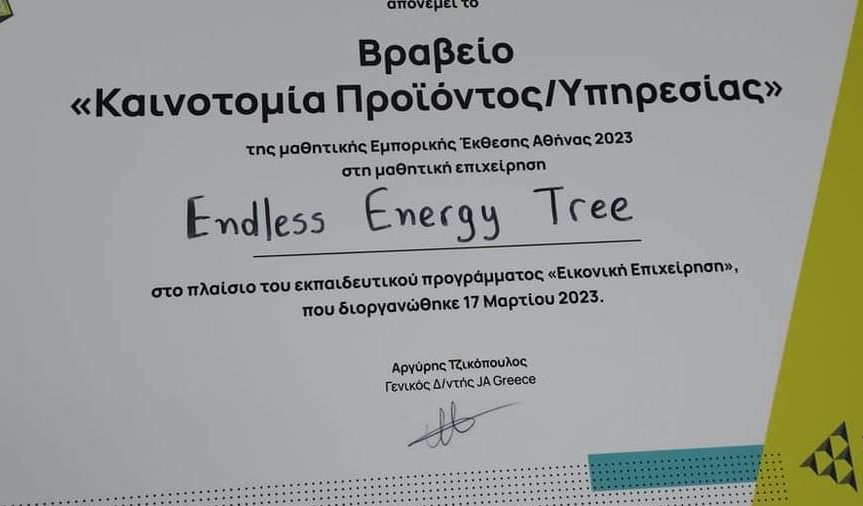 Η Μαθητική επιχείρηση "Endless Energy Tree" των μαθητών του Ομίλου Νεανικής Επιχειρηματικότητας του Pierce απέσπασε την 1η θέση και το Βραβείο "Καινοτομία Προϊόντος/Υπηρεσίας" στη Μαθητική ΕμπορικήΈκ